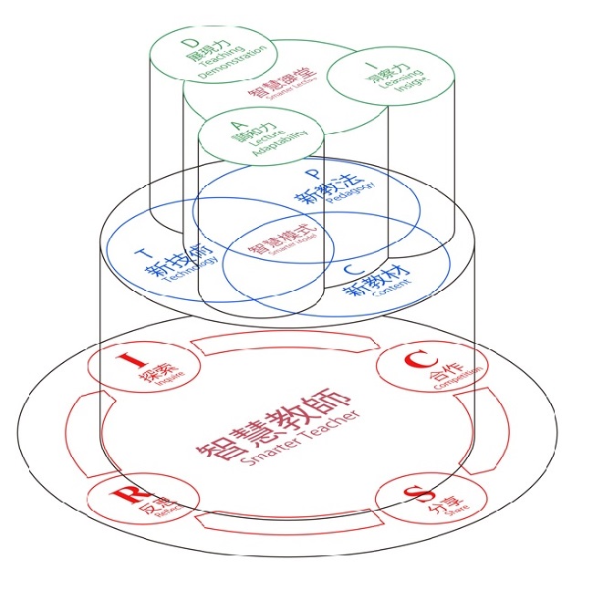 智慧教育之教師專業發展三層式鷹架,是在智慧教室系統支持下,教師專業可以獲得更有效能的成長與精進,本鷹架提出六項教師專業成長途徑,包括教學模式提煉、教學歷程反思、學習歷程應用、診斷分析報告、專業自主學習、團隊社群分享等。簡言之,基於智慧教育之教師專業發展理念與技術,已經跳脫了傳統教師專業發展的成長模型,可以幫助教師更有系統、更有效能的、以及更有智慧的專業成長。